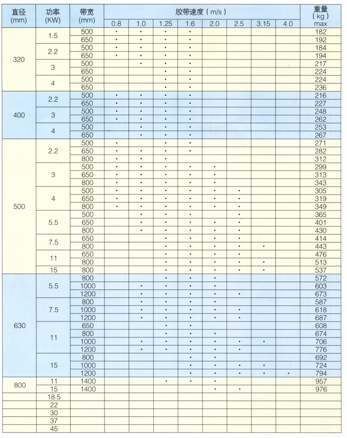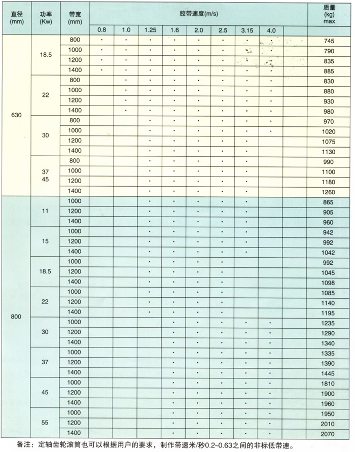 该产品是DT型、DTⅡ型通用固定式胶带机的内驱动装置,其内部采用定轴齿轮二级传动,属于老产品,但用途最广泛,与减速机相比较,具有占地小、重量轻、外观整齐、效率高,在粉尘大、潮湿泥泞的恶劣环境下仍能正常工作等优点。随着电动滚筒的不断革新与技术进步,根据需要也可以制成三级减速(0.08-0.63米/秒之间的低带速),以满足用户之要求。